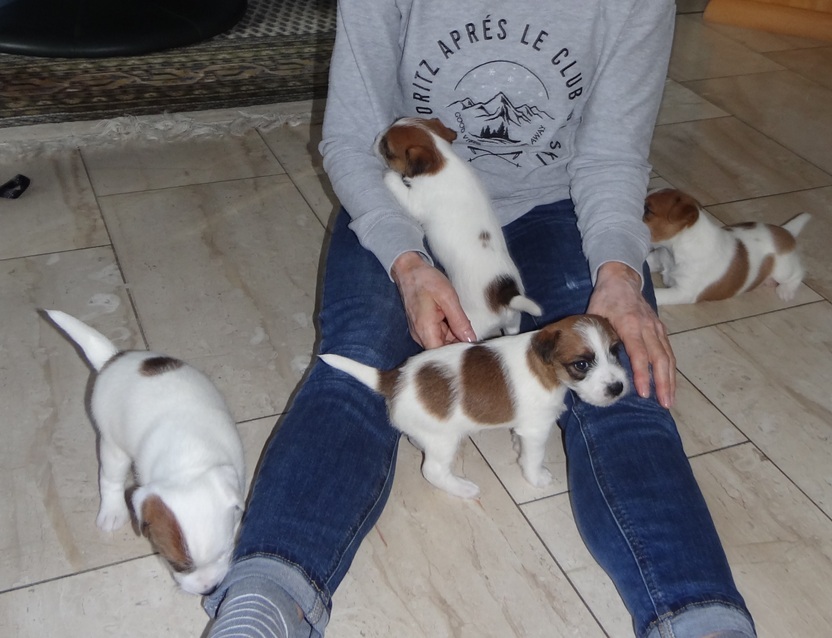 Unsere Russellbande, in der ganzen Familie verstreut.